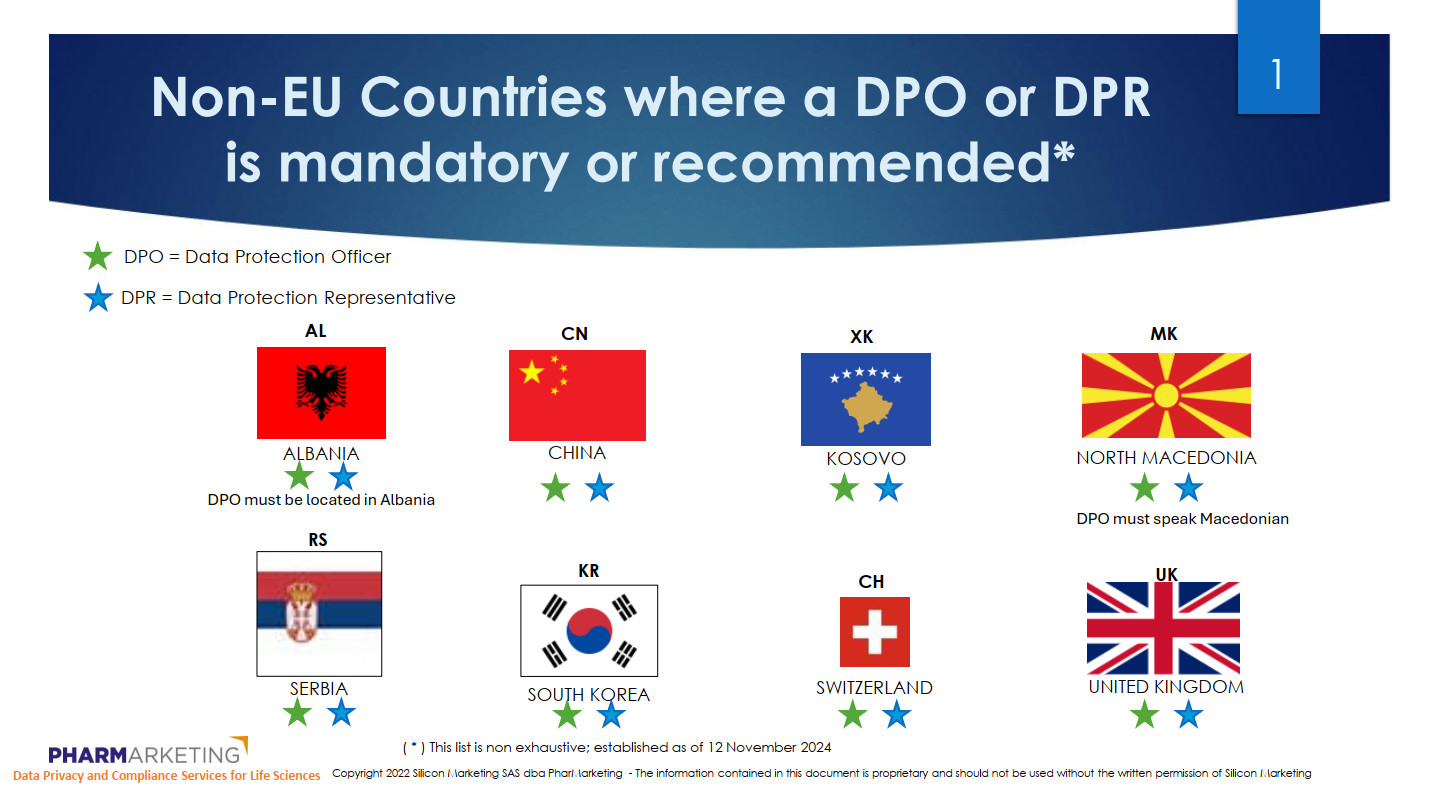 To make sure your organisation complies with these new local laws and guidelines, contact us: we will advise you and we can provide local DPOs and DPRs based in these countries and speaking the local language and know the life sciences industry.