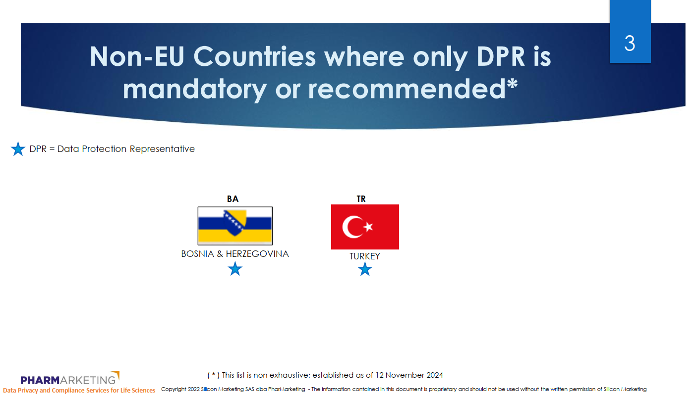 Local Data Protection Officer ('DPO') and Data Protection Representative ('DPR') are now mandatory in several Non-EU Countries like the Balkans, Moldova, Singapore, etc.